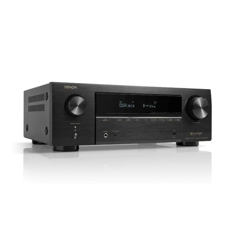 7.2-channel 8K AV receiver (80 W/ch) with HEOS & 3D audio.