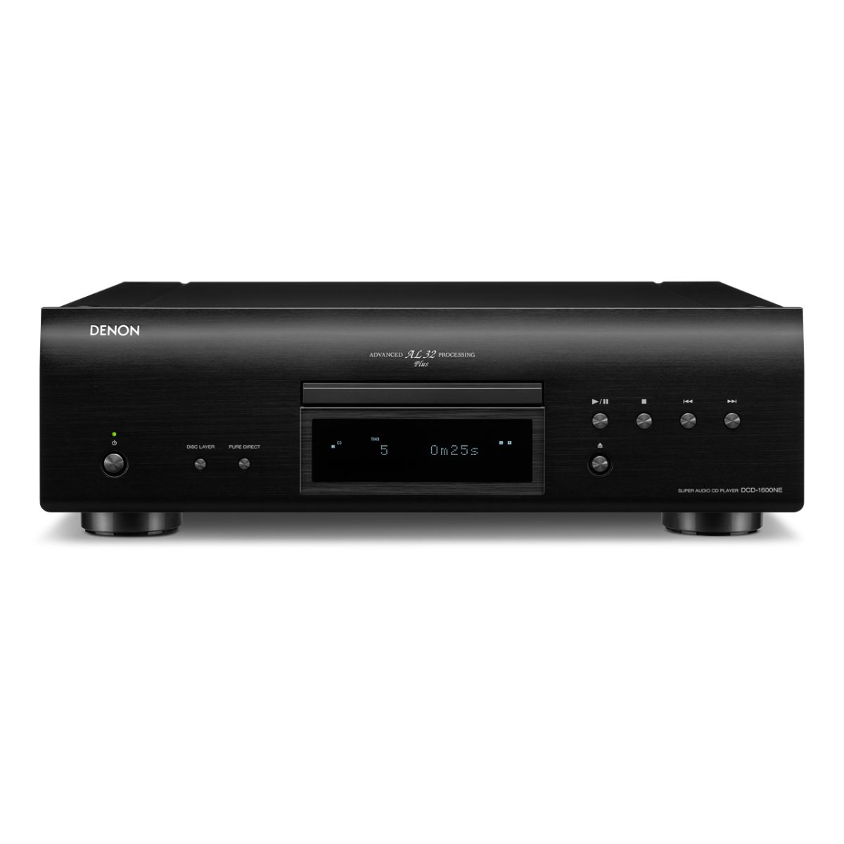 Denon is one of the rare audio brands that continued to actively develop Hi-Fi components and accumulate, refine, and pass down Hi-Fi audio technologies. The DCD-1600NE focuses on achieving the essence of a disc player: ultra-high precision in reading discs and supplying high-quality audio signals to the amp. To achieve this, the signal paths are as short as possible and the whole circuitry is minimized. The engineers also redesigned the disc drive mechanism brackets and the chassis to eliminate vibration, the great enemy of disc players, and achieve ultra-vibration-resistant performance. The information on the disc is now read with impeccable accuracy and a clean, high-grade signal is supplied to the DCD-1600NE?s Advanced AL32 Processing Plus circuitry. Besides CD and Super Audio CD playback, the DCD features playback of audio recordings up to PCM192/24 or DSD5.6 recorded on a DVD R/RW for full flexibility and extended access to high resolution audio.