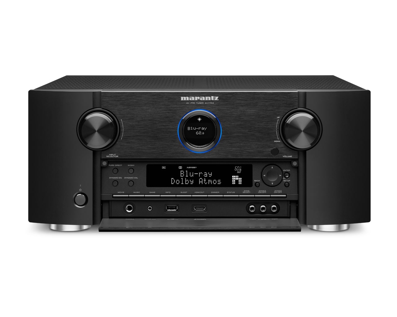 Experience the most versatile home theater setup with the new Marantz AV7704 processor/pre-amplifier. It combines the unique Marantz audiophile sound with all the latest home cinema technologies, including Dolby Vision compatibility, HLG, and all 3D surround sound formats already built-in.