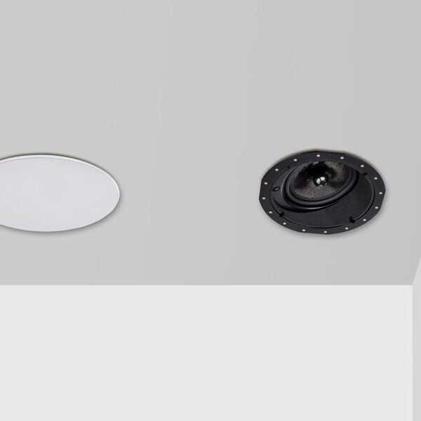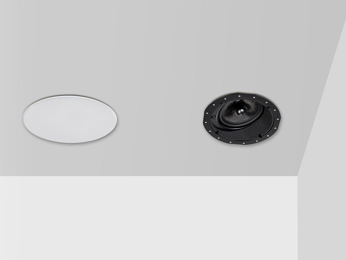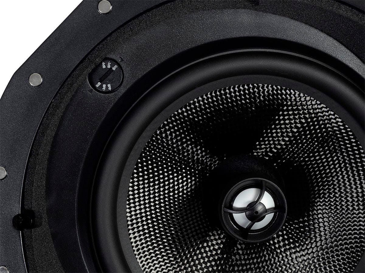 This carbon fiber in-ceiling speaker is the perfect combination of performance and style. The use of carbon fiber for the woofer means that the speaker can hit harder, go lower, and handle more power with significantly less distortion than conventional drivers. The silk dome tweeter produces clean, crisp, and clear highs and mids. You can fine tune the blend of sound using the built-in high frequency attenuator in case the sound is too bright. The metal grille can be painted to match your ceiling and attaches easily using magnets.