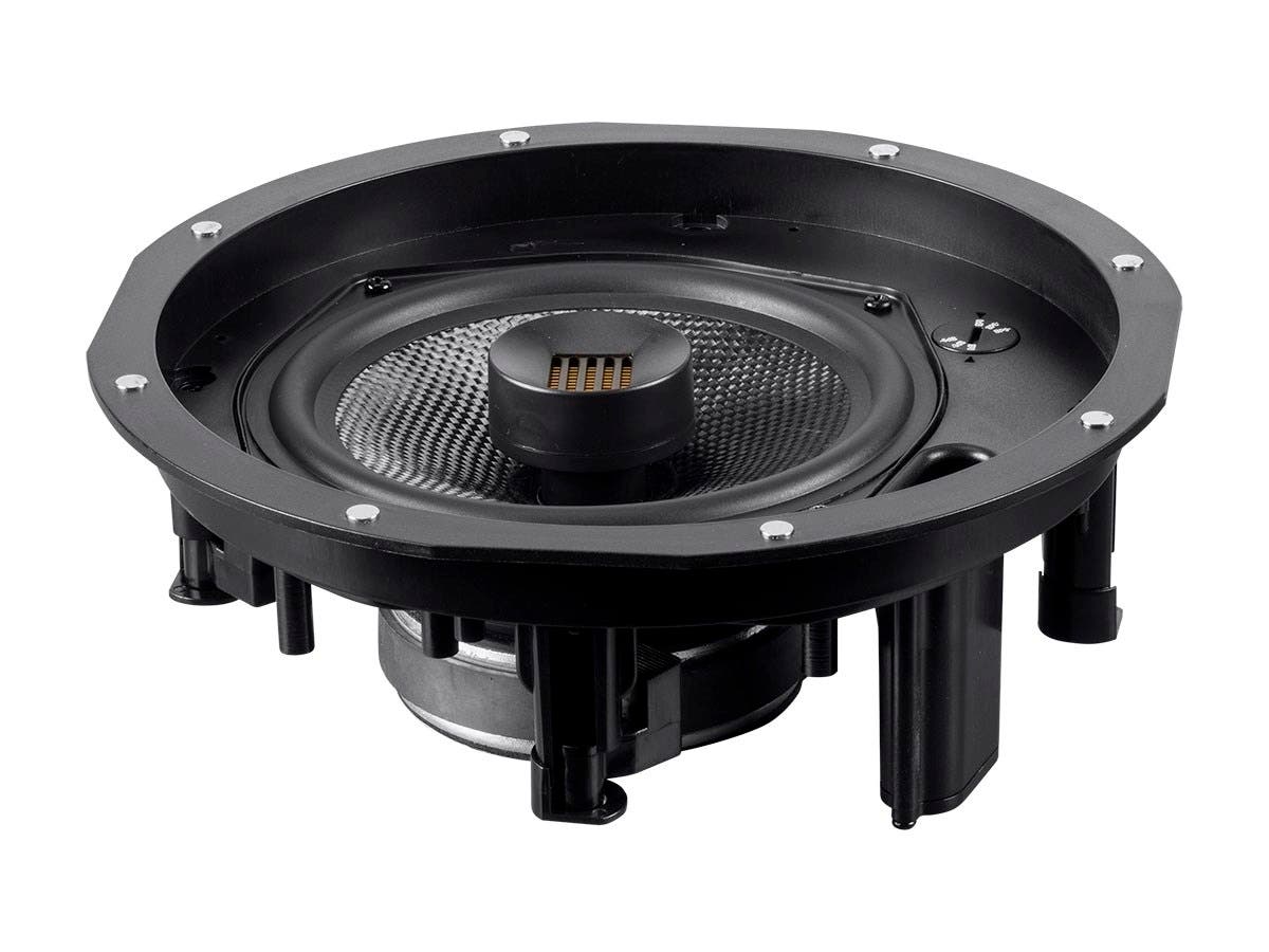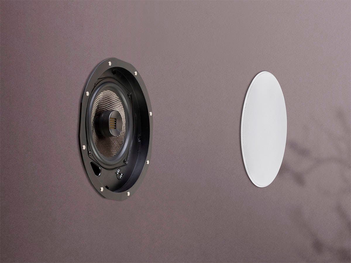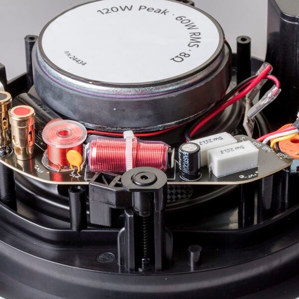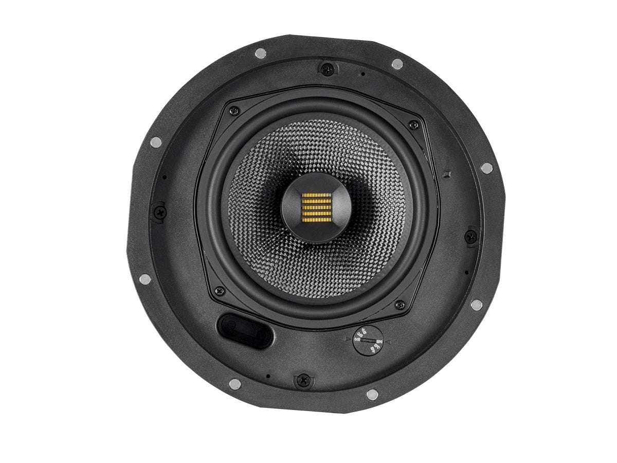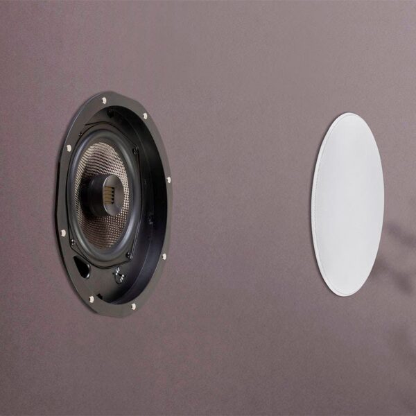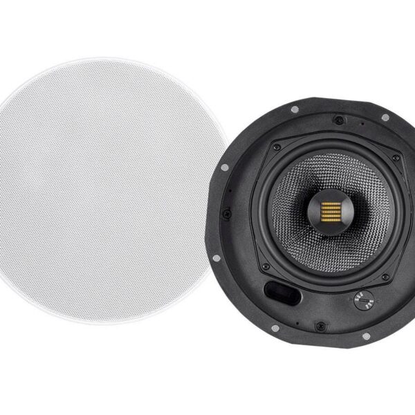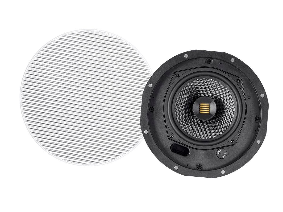 In-ceiling speakers are the ideal combination of sound quality and styling. Rather than cluttering the room with large box speakers trailing speaker wires, the speakers are virtually invisible, while filling the room with high fidelity audio. Featuring a removable and paintable grille, this 2-way speaker uses a carbon fiber woofer cone with rubber surround for deep, impactful bass, and a ribbon tweeter for sweeter and smoother high frequencies.